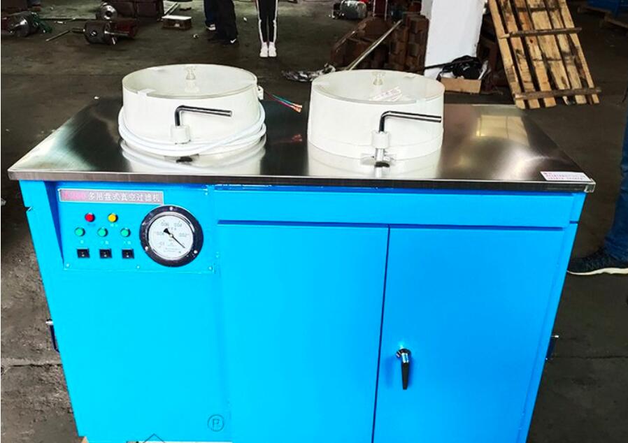 XTLZ型真空过滤机,设有两个容量不同的滤盘,不同量的矿浆可以直接倾入相应容量的盘内进行脱水处理。真空系统主要有旋片式真空泵,分水滤气器、真空负压罐、电磁阀以及真空管道组成。